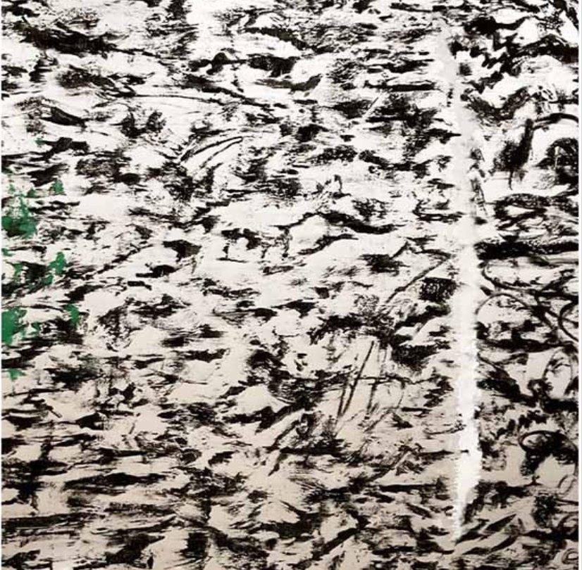 The composition of Untitled (2012) is non-representational, characterized by layers of overlapping marks that suggest both spontaneity and control. The surface of the painting is built up with layers of paint and metallic pigments, creating a rich textural quality that catches and reflects light. This reflective surface disrupts the viewer’s ability to see the painting as a static object, instead making it appear as though it is constantly shifting in response to its environment.