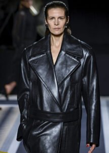 One particularly striking look was a black velvet cape with silver stud embellishments, worn over a sheer blouse and perfectly tailored trousers. This piece encapsulated Copping’s vision—a fusion of old-world glamour and modern wearability.