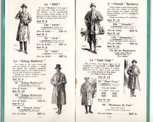 The catalogue offers these coats lined or unlined, in both gabardine and wool, with options for removable collars, buckled belts, and interior compartments—early examples of modularity in fashion. More than aesthetics, they represented adaptability.