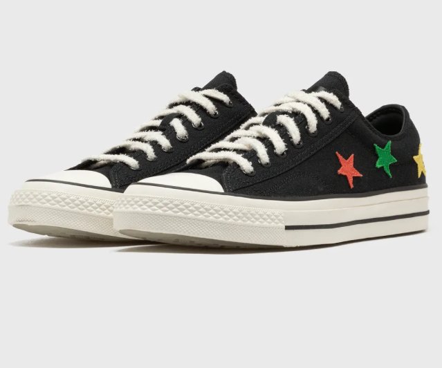 The mix retains the sneaker’s quintessential DNA—black canvas upper, rubber toe cap, and classic vulcanized outsole. That structure is untouched, and deliberately so. It honors Converse’s design heritage, reminding wearers that innovation doesn’t always have to mean reinvention. What’s been added, however, are layers of meaning. Embroidered stars in the red, yellow, and green of the Pan-African flag race across the upper like constellations of resistance and pride. These colors aren’t decoration; they’re declarations.