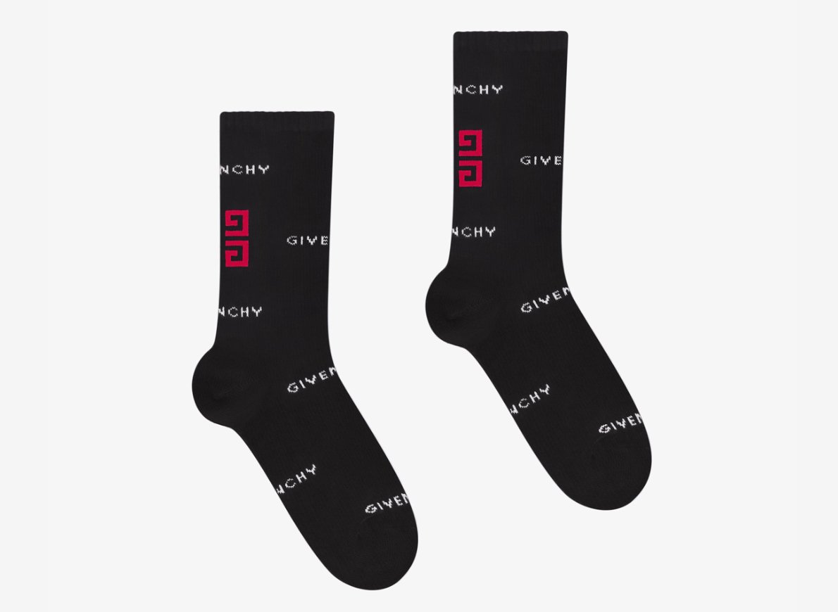At first glance, these socks appear restrained, refined—perhaps even understated. Crafted in fine knit with a tonal or contrasting palette, the iconic 4G monogram repeats in a meticulously engineered jacquard pattern. There is no vulgar branding here, no brash color-blocking. Instead, Givenchy offers presence through precision: logo as architecture, fabric as language.