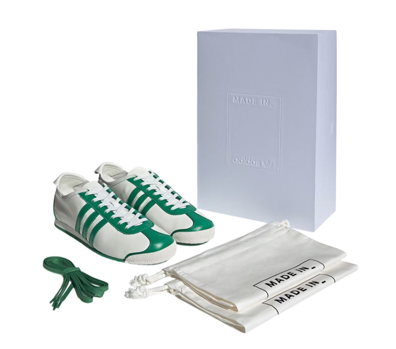 Among the pantheon of shoe legends, the Adidas Italia holds a singular place—not just as a shoe, but as a relic of design exactitude, cultural lineage, and national identity. Originally conceived in 1960 to coincide with the Rome Summer Olympics, the Italia has since passed through decades of stylistic shifts, quietly asserting itself through understatement and craftsmanship. In its newest revival, Adidas reintroduces the Italia “Made in Italy” edition, rendered in a pristine Core White and Green palette—a pair that channels the spirit of Italian sport, fashion, and finesse through every stitch.