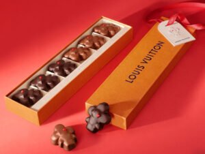 The heart-shaped chocolates are the epitome of romance, designed especially for Valentine’s Day. Each chocolate is adorned with iconic Louis Vuitton motifs, such as the Monogram flower and the LV initials, adding an extra touch of luxury. Made from the finest ingredients, these chocolates melt in the mouth, offering an indulgent experience that is both visually and gastronomically delightful.