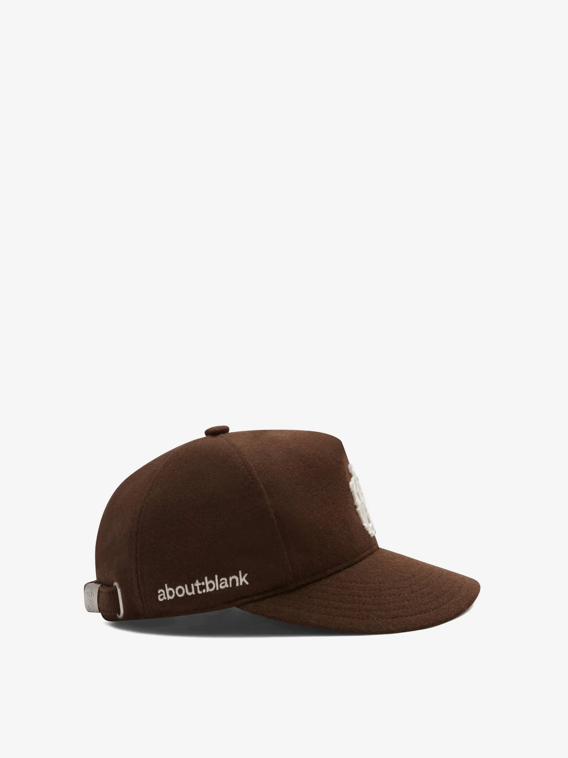 The about:blank Monogram Cap in Brown/Ecru ultimately succeeds because it understands its role. It does not attempt to redefine the cap. It refines it.