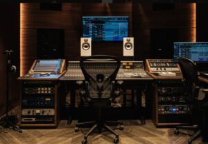 - Acoustically optimized mixing rooms, vocal booths, and collaborative workspaces