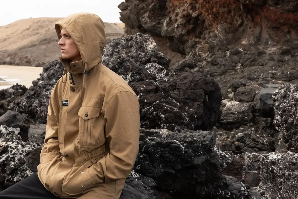 Materiality carries equal weight. Technical fabrics—water-resistant weaves, breathable knits, recycled composites—are engineered for modern wear but evoke legacy. A field jacket recalls 1980s military silhouettes, updated with ergonomic construction and concealed ventilation. A track top gestures toward Olympic heritage, refined through slimmer proportions and tonal detailing.