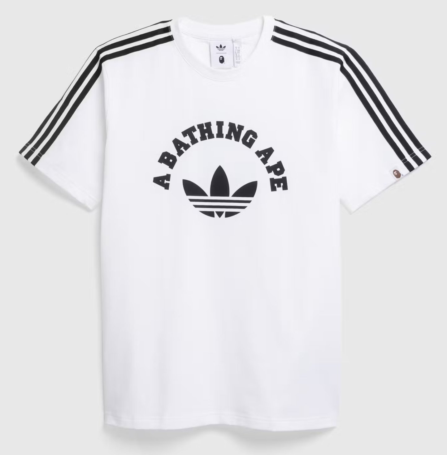 At first glance, the White BAPE Tee is minimalist. But beneath its simplicity lies decades of design language, cross-cultural influence, and street-level credibility. The all-white backdrop serves as a neutral canvas, allowing the co-branded graphics to speak with clarity. Front and center is the instantly recognizable BAPE ape head, subtly paired with adidas’ Trefoil logo—two symbols that represent different corners of fashion history but are united in their global impact.
