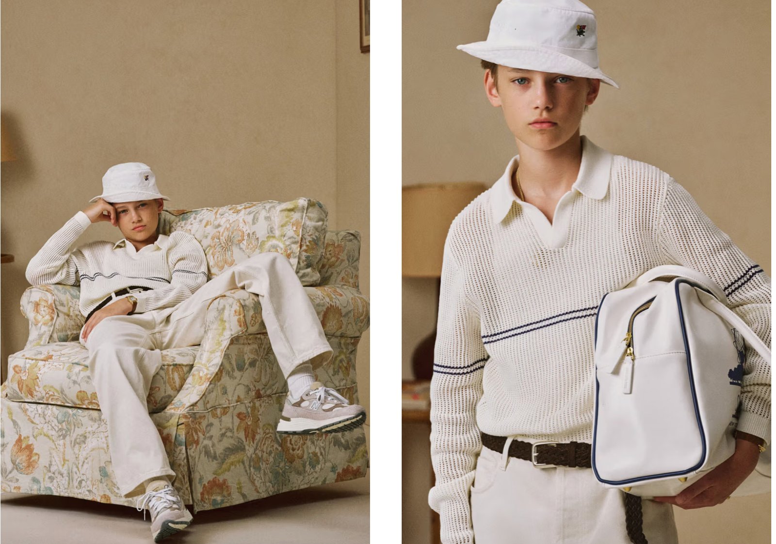 The references in Drop 4 are clear but never costume. Loosely cut linen suits, polo shirts with crest embroidery, varsity jackets with collegiate appliqués, and crochet knits all nod to an era when style was inherited, repurposed, and remixed.