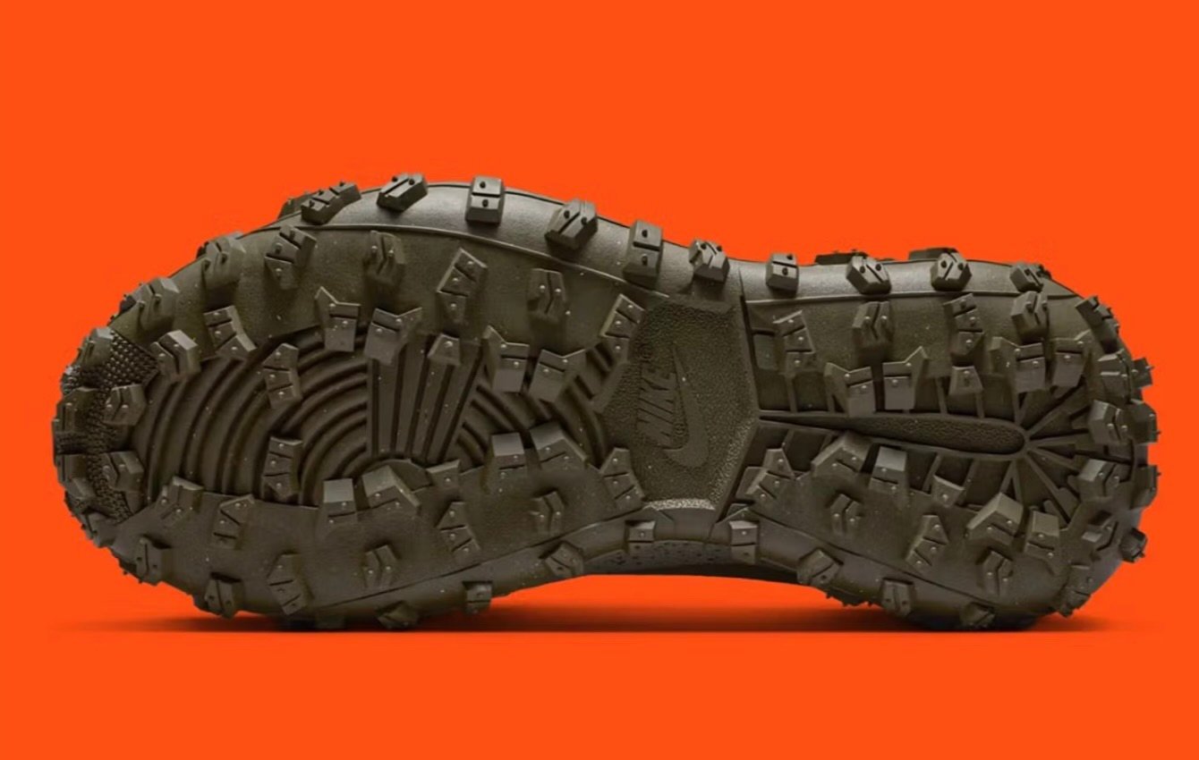 This outsole bridges categories: it has the bite of a trail sneaker, the balance of a golf shoe, yet still retains the circular pivot points of the OG basketball tooling. In other words, it refuses to commit to one discipline, embodying the multi-environment ethos of today’s sneaker culture.
