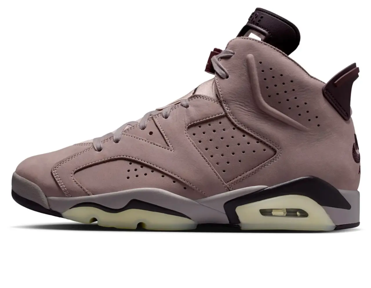 The partnership between A Ma Maniére and Jordan Brand has reached a point where each release feels less like a collaboration and more like a continuation of a visual and emotional language shared by both houses. James Whitner’s Atlanta-rooted label has consistently reinterpreted classic Jordan silhouettes through a high-fashion lens, softening the edges of performance design while heightening the textures, palette, and purpose behind each drop. With the Air Jordan 6 × A Ma Maniére Men’s Retro SP “Smokey Mauve,” that philosophy reaches a new level of maturity. This is a sneaker that does not merely update the Jordan 6; it reframes it. It takes the archival framework of Tinker Hatfield’s 1991 masterpiece and reorients it toward quiet luxury, cultural depth, and the emotional resonance A Ma Maniére has become known for.