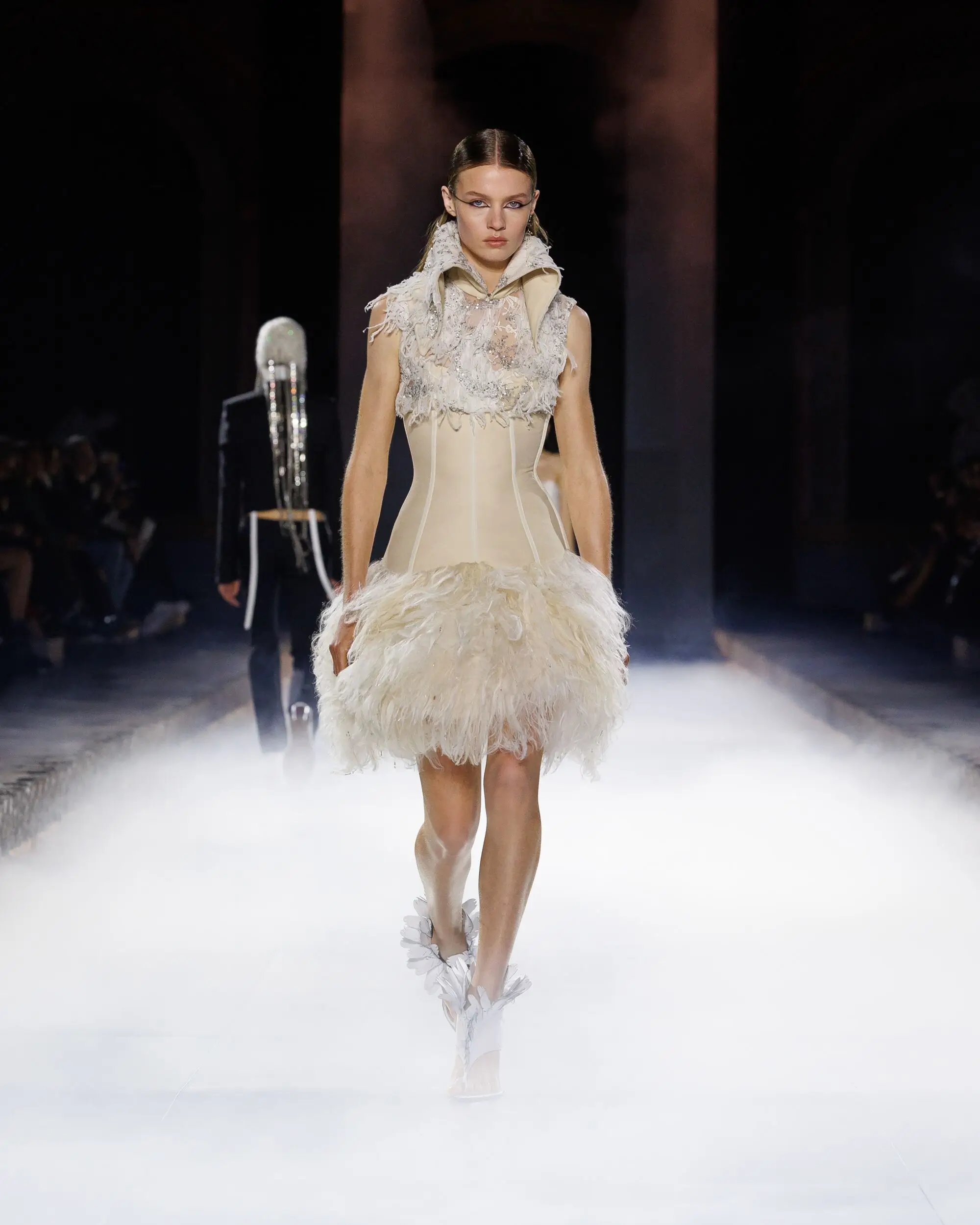 The contrast between rigidity and fragility became a recurring McQueen motif.