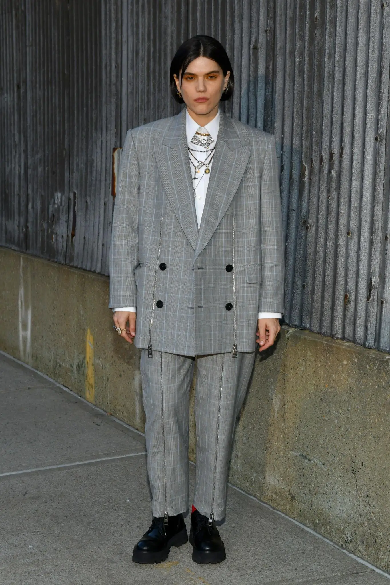 Women wore suits with masculine structure yet sensual shaping. Menswear silhouettes incorporated fluidity and dramatic proportion.