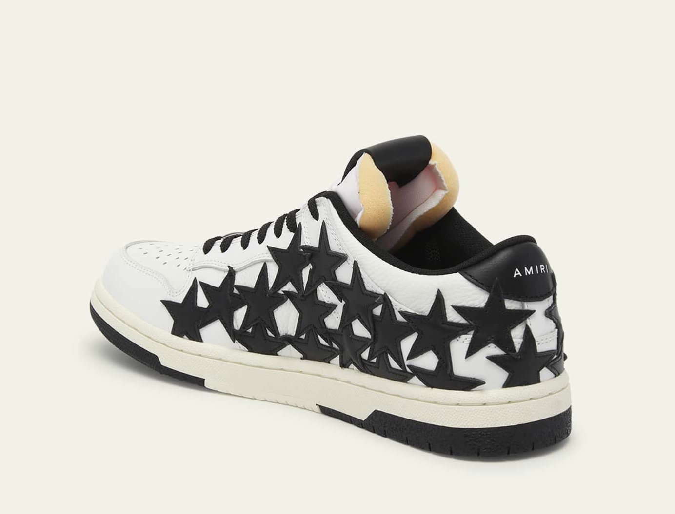 The star motif itself is a signature feature that sets the shoe apart. It is usually applied through techniques like appliqué or embroidery, adding texture and depth to the design. In some variations, the star is distressed, with frayed edges or slight discolorations that lend the shoe a vintage, worn-in appearance. This element of imperfection is deliberate and emblematic of Amiri’s broader approach to fashion—where the beauty lies in the interplay between polished luxury and rugged, almost rebellious detailing.