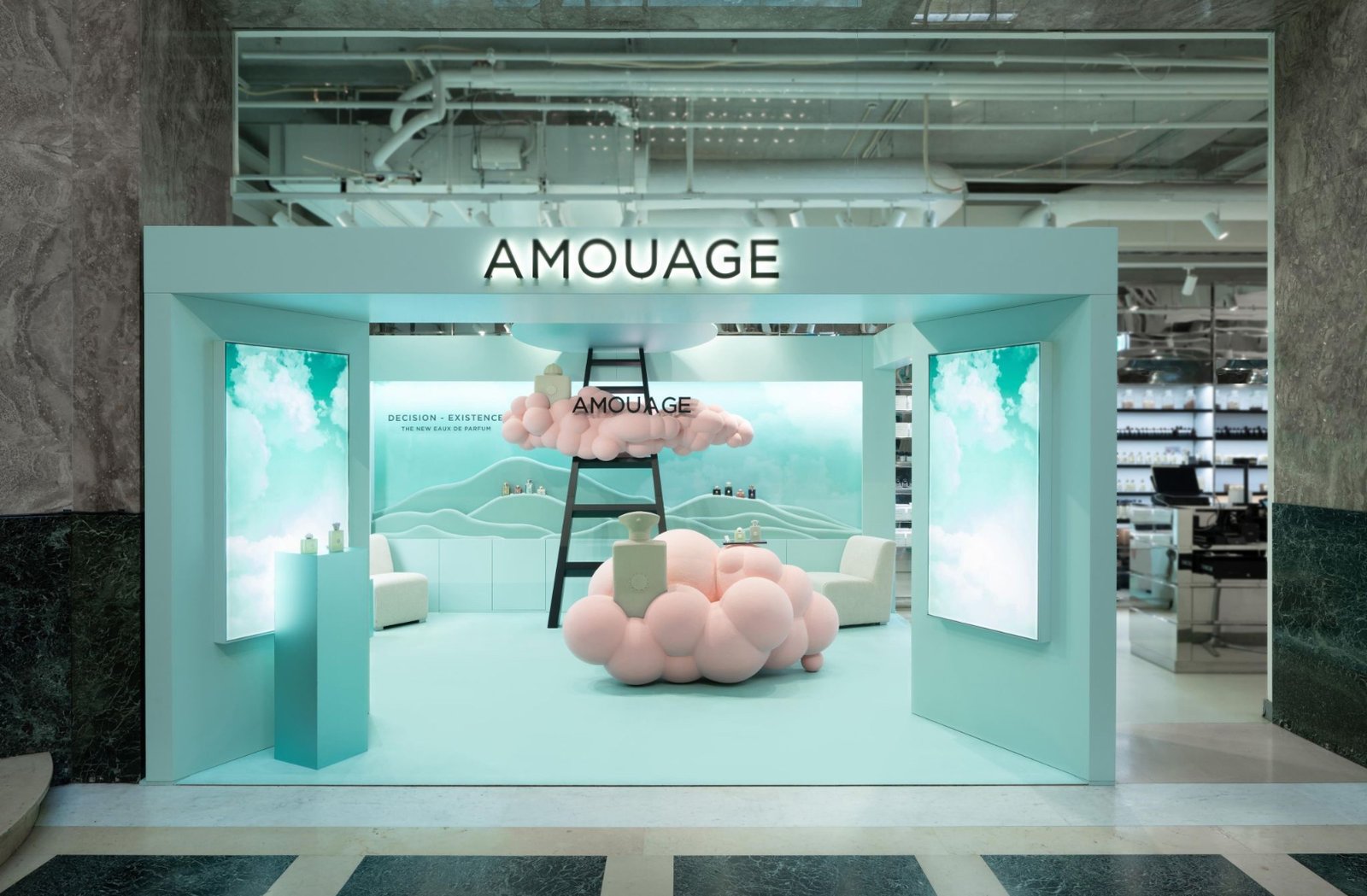 The spatial transformation by Claire Flourens and conceptual studio Héroïne, produced by Pardgroup and orchestrated by Serge Fahd, is no ordinary retail corner. Instead, visitors step into a dreamscape of olfactory serenity—a place imagined less as a perfume counter and more as a philosophical alcove. This is the House of Amouage’s ephemeral sanctuary, a chamber carved into Galeries Lafayette’s Niche Perfumery section, curated to slow time and sharpen the senses.