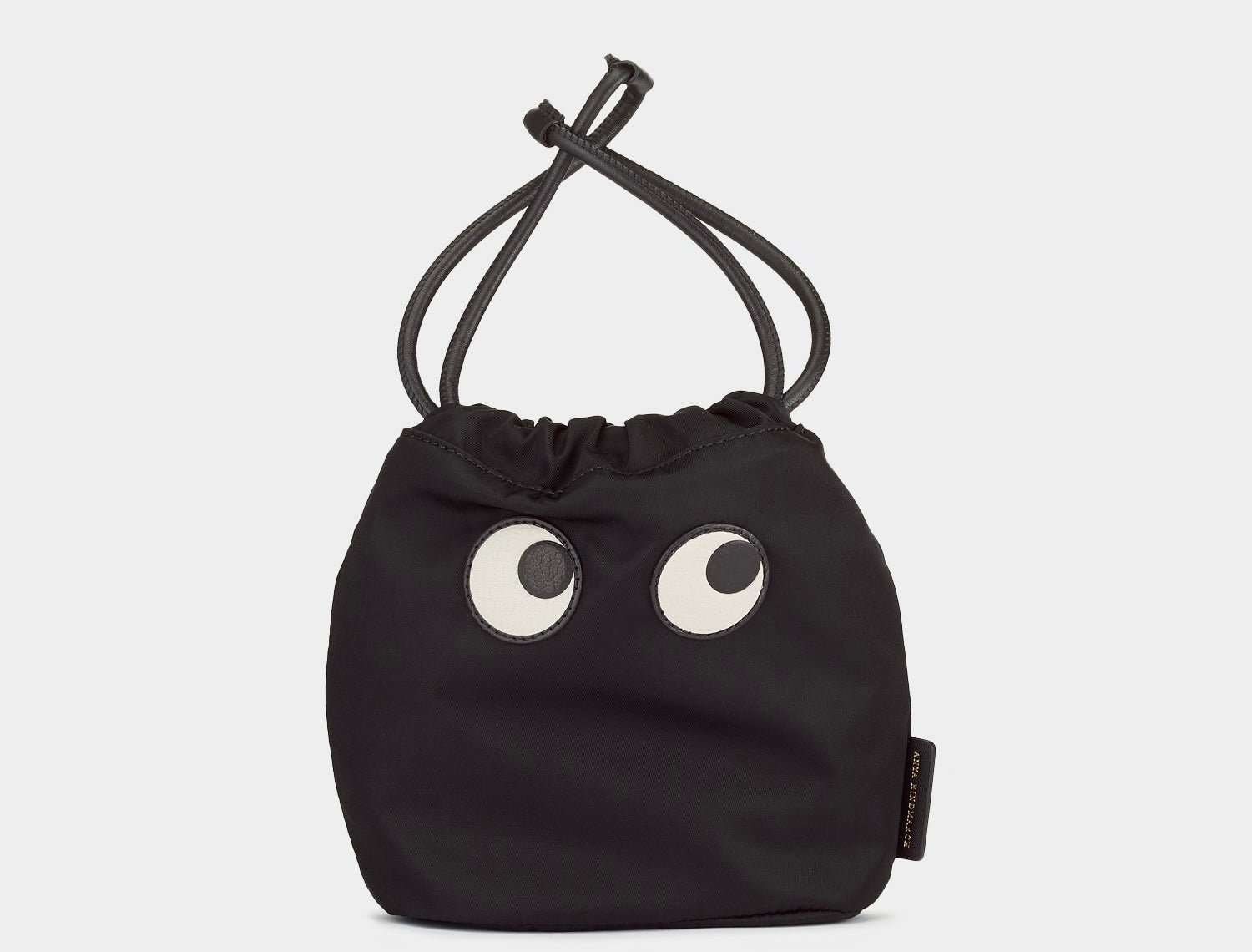 The “Eyes Drawstring Pouch” by Anya Hindmarch is a perfect blend of playful design and eco-conscious craftsmanship, making it a standout accessory for those who appreciate both style and sustainability. Made from ECONYL® regenerated nylon, the pouch highlights the brand’s dedication to reducing waste by reusing materials like discarded fishing nets and other synthetic waste. This commitment to sustainability sets Anya Hindmarch apart as a luxury brand with a forward-thinking ethos.