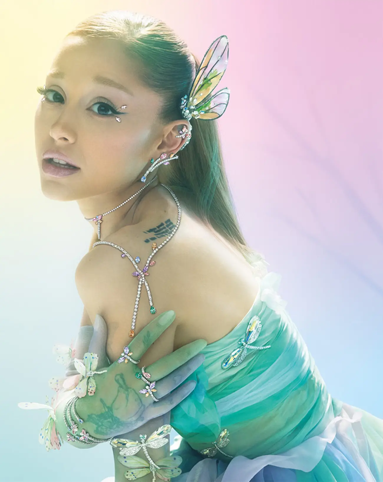 Color plays an equally significant role. The palette associated with Grande’s fairycore moment leans toward the diffused: blush tones, muted creams, pale lavenders, soft greens. These are not the saccharine pastels of earlier eras, nor the aggressively bright hues of digital aesthetics. They are colors that feel lived-in, slightly desaturated, as though filtered through memory.