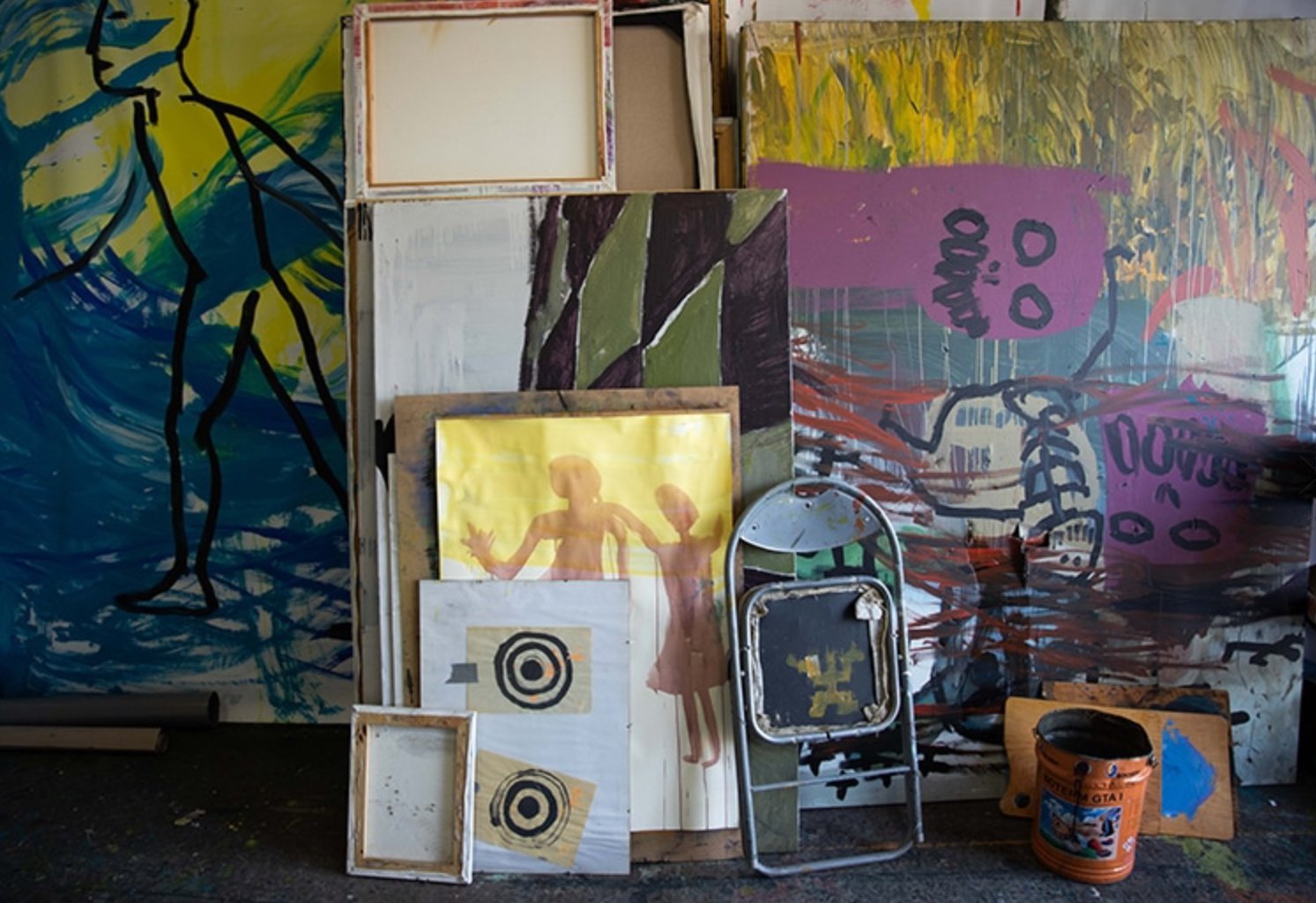 “I believe in craft,” he says. “But not in perfection.” He talks about learning to mix pigments by hand, how temperature and air affect drying. But he also scorches canvases, smashes frames, lets decay set in. “Destruction is part of the form,” he says.