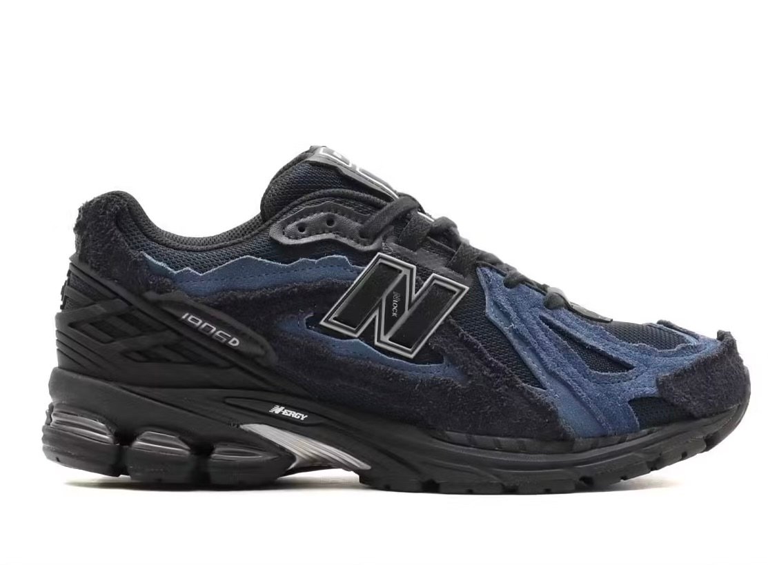 The “Deep Sea” edition of the New Balance 1906D features a rich palette of navy and blue hues, emulating the gradient descent into the ocean’s abyss. The sneaker’s base is constructed with deep navy mesh, overlaid with jagged-edge suede panels in varying shades of blue, creating a layered, textured appearance reminiscent of underwater landscapes. Black accents on the vamp, laces, tongue, upper eyestay, and TPU heel counter provide contrast, while the midfoot’s white-and-black ‘N’ logo is integrated with nylon lace loops for added detail. The design is completed with a blacked-out midsole and matching outsole, enhancing the sneaker’s sleek, aquatic theme.