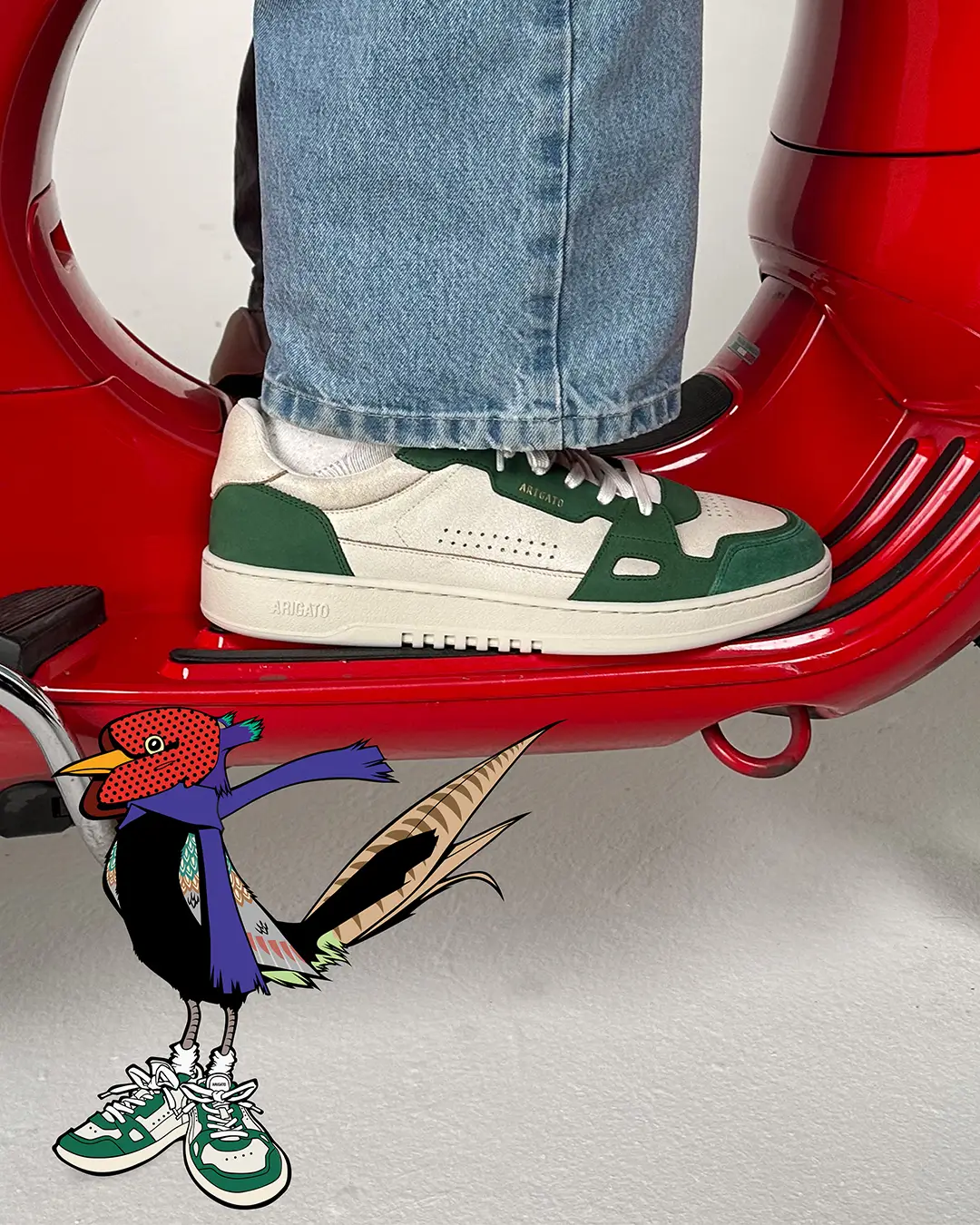 The project emerged from a year-long creative exchange between Reggieknow and Axel Arigato Creative Director Jens Werner. Together they revisited the foundations of the brand’s iconography, examining how the Bee-Bird concept could evolve without losing its symbolic resonance.