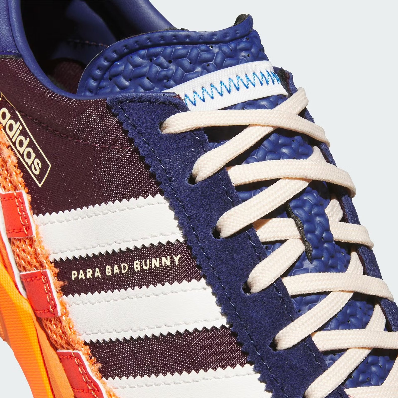 True to Bad Bunny’s maximalist aesthetic, the sneaker features exaggerated elements like oversized Adidas branding, an extended tongue tab, and bold heel overlays. These details add a touch of drama, ensuring the sneaker stands out in any setting.