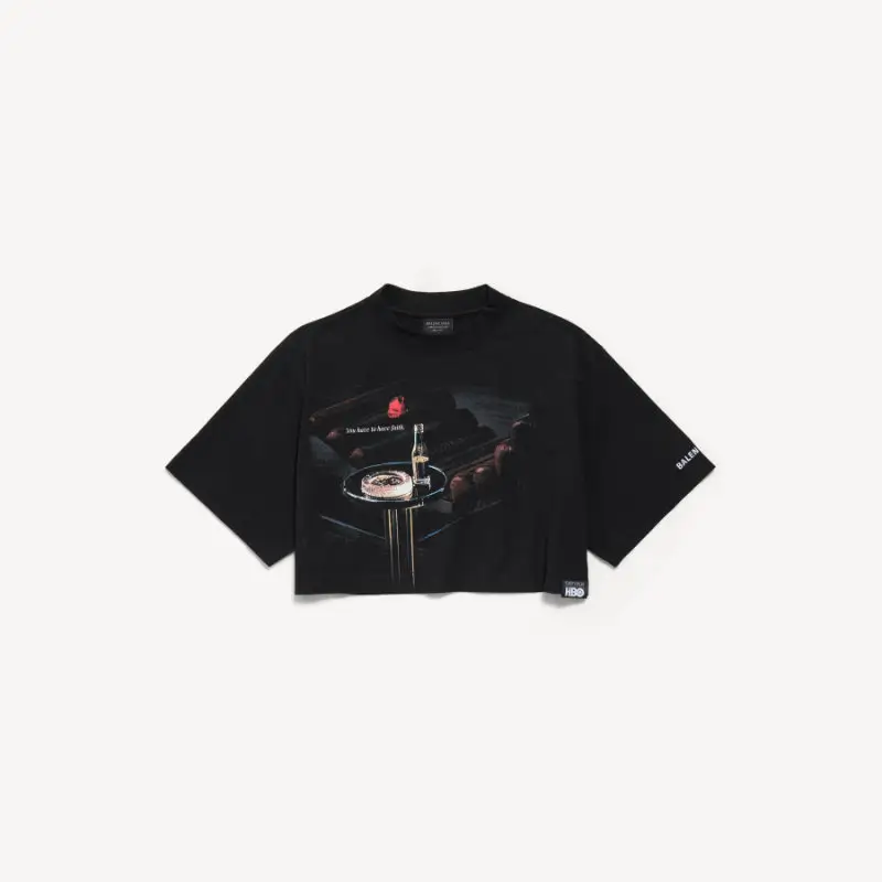 Exclusivity is reinforced through meticulous detailing. Each item carries a numbered Balenciaga | HBO tag, signaling its place within a limited edition. Packaging includes QR-enabled content, extending the experience beyond the physical garment.