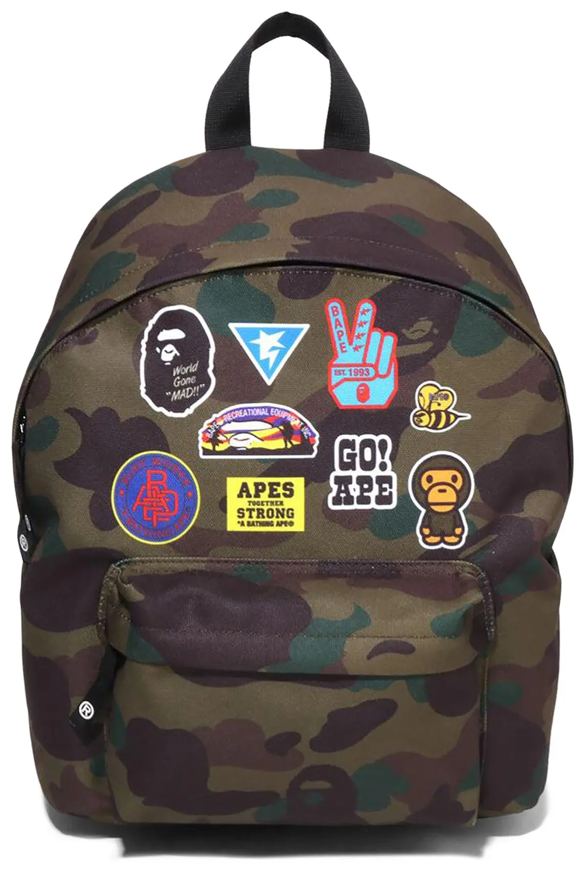 BAPE’s 1st Camo pattern — a bright, abstract reinterpretation of traditional camo — represents a tongue-in-cheek take on this history. Its exaggerated shapes and vivid colors transform a military symbol into something playful, almost cartoonish. By incorporating this print into the BAPE Kids daypack, the brand invites children into the world of streetwear with a pattern that is bold yet friendly.