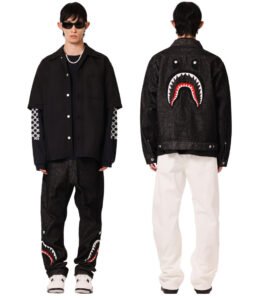 This season’s textile experimentation is also a subtle nod to environmental dialogue. BAPE introduces a line of modular garments constructed from upcycled deadstock—jackets with detachable sleeves, reversible bucket hats, multi-pocket tech pants—all rendered in patchworked BAPE patterns from the brand’s archive. Here, the idea of fashion as software, editable and sustainable, takes form.