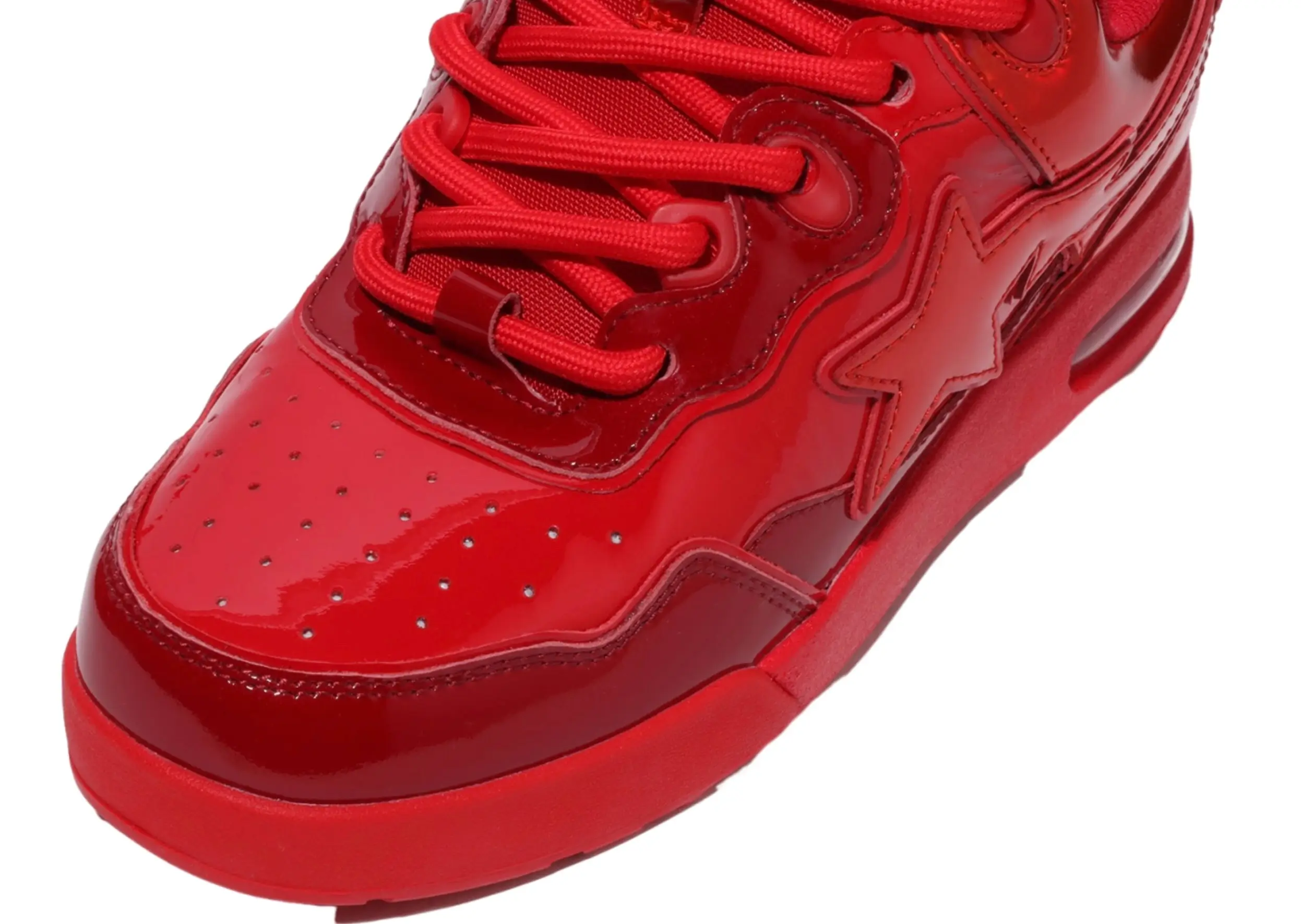 Red sneakers are never neutral. They carry energy, visibility, and ego. The Flip Sta Red uses red not as accent but as foundation. Its overlays adopt a lacquer-like red with a subtle gloss that echoes the era of patent leather Bapestas without being a one-to-one replication. The shoe balances nostalgia with a more refined execution—less plasticky shine, more luxury enamel tone.