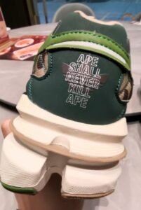 Moreover, camouflage—especially BAPE’s hyper-recognizable version—has become a cultural constant in both streetwear and haute contexts. In this case, the print doesn’t just decorate the shoe; it asserts a visual language of rebellion, anonymity, and coded allegiance.