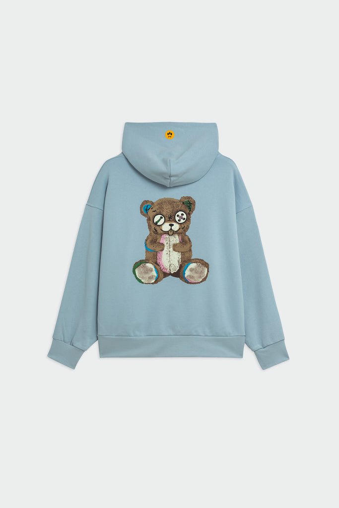 The hoodie features a prominent teddy bear graphic on the front, reflecting Barrow’s penchant for playful and eye-catching motifs. The teddy bear is often depicted with unique elements, such as vibrant colors or unexpected details, aligning with the brand’s avant-garde approach to streetwear. Additionally, the hoodie includes the Barrow logo, either integrated into the graphic or positioned separately, reinforcing brand identity.