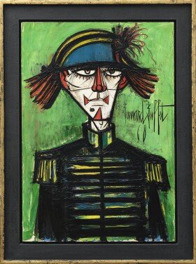 One of Buffet’s most iconic works, “Clown,” captures the essence of his artistic vision. Painted with stark lines and a subdued palette, “Clown” portrays a figure of both whimsy and sorrow. The juxtaposition of the clown’s traditional role as a source of entertainment with the evident sadness in its eyes speaks to the complexity of the human condition. This painting, like many of Buffet’s works, invites viewers to explore the depth of emotion behind the facade.