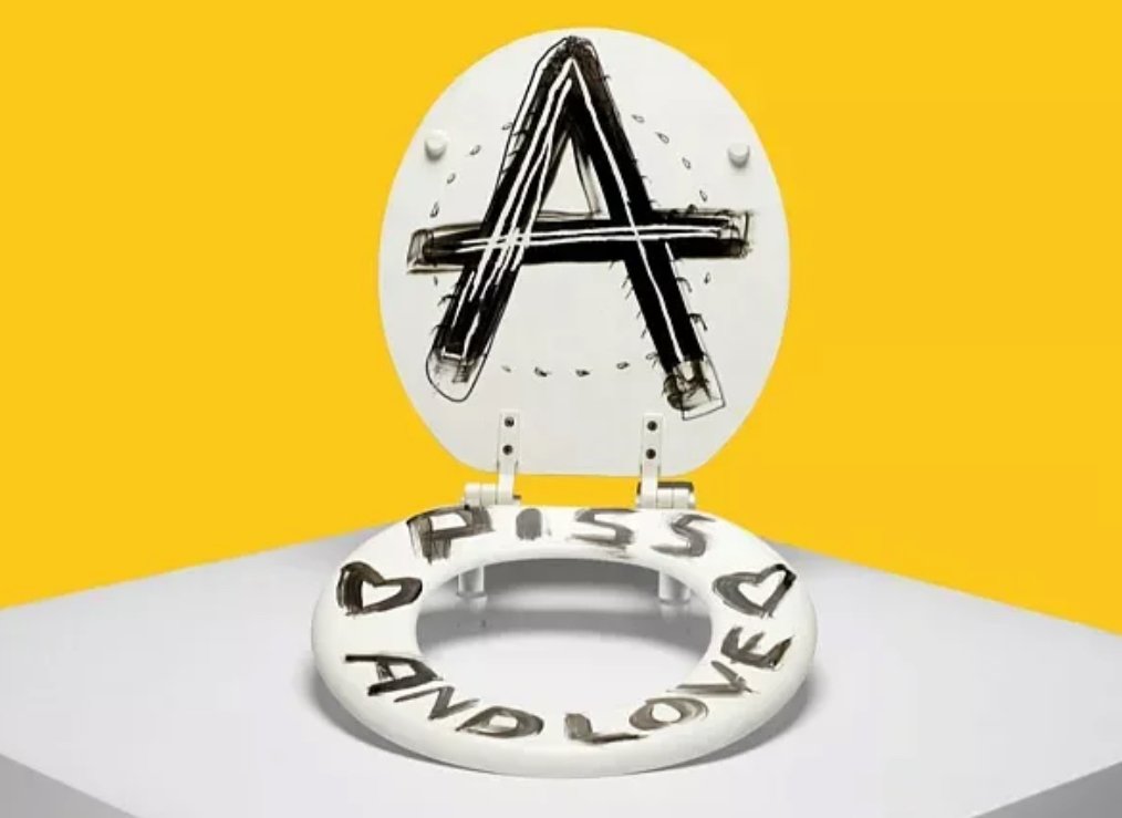 Boy George’s seat stands out for its boldness and playfulness. The phrase “piss and love” is a twist on the famous “peace and love” slogan often associated with the counterculture movement of the 1960s and 1970s. By subverting this iconic phrase, Boy George injects his trademark irreverence and punk spirit into the design. The seat becomes a reflection of his personality: rebellious, humorous, and unafraid to challenge societal norms. As he stated, the design was intended to bring “humor and optimism” into the art, a sentiment he regularly incorporates into his work, whether in music or visual creations.