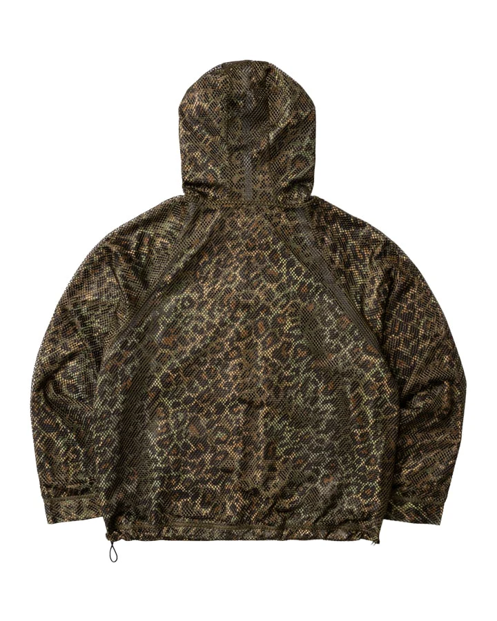 It also keeps the jacket wearable. Leopard print on its own can feel heavy visually. The mesh tones it down just enough, giving the whole piece a more balanced feel.