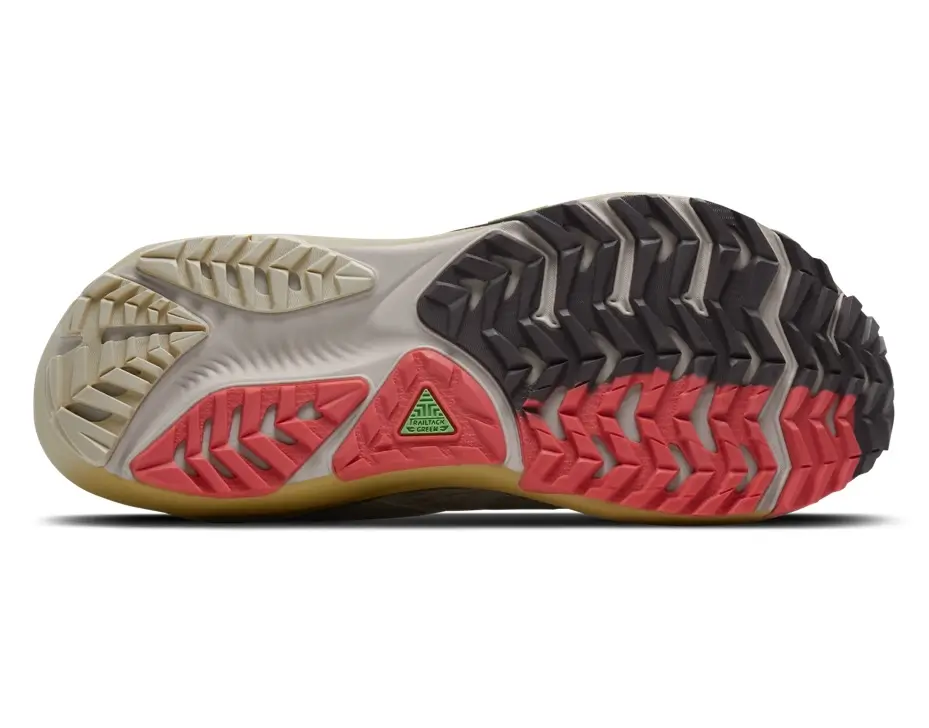 For trail environments, the outsole incorporates aggressive traction patterns that improve grip across dirt, gravel, and uneven surfaces.