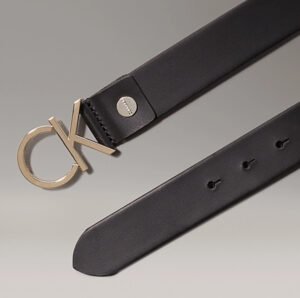 Rooted in the American minimalism that Calvin Klein helped define throughout the late 20th century, this belt channels the brand’s ongoing commitment to clarity of form and structural elegance. It’s not an ornamental piece. Rather, it is utilitarian chic at its most distilled. Cut from smooth black leather, often polished but never flashy, the strap adheres to a strict geometry. It recalls the architectural integrity of New York’s skyline: no excessive flourishes, just clean lines and confident utility. The silver-tone “CK” buckle—whether rendered in brushed steel, matte chrome, or antique brass—serves as both a fastening device and a quiet signifier of modern heritage.