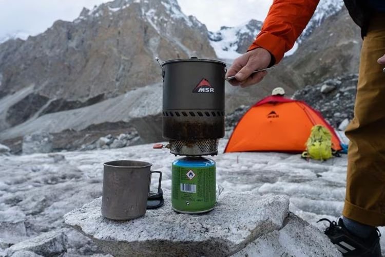 That metallic mug placed just beside the stove is not merely waiting for tea—it is waiting to affirm the camper’s existence, the proof that one made it here, that one woke beneath ridgelines older than empire. The wear on the pot’s bottom, the soot it collects, tells a story more human than any digital footprint.