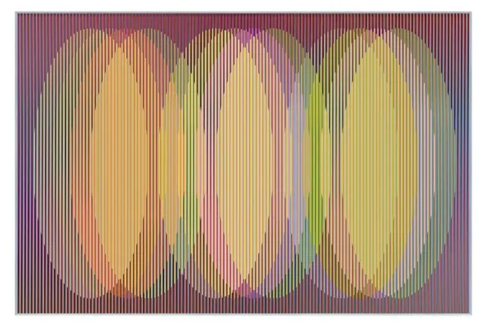 At the center of Cruz-Diez’s practice lies the concept of chromatic induction—the phenomenon by which color is generated not by pigment, but through the interaction of light, structure, and the human eye. Unlike traditional painting, where color is fixed and contained within defined outlines, the Physichromies operate as systems—mechanisms designed to produce color through optical interference.