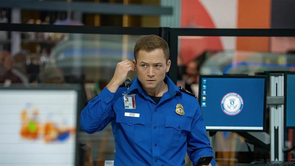 The airport location opens the door for inventive action sequences, from baggage carousels to jet bridges, and the constant stream of innocent bystanders adds a layer of urgency to Egerton’s mission.