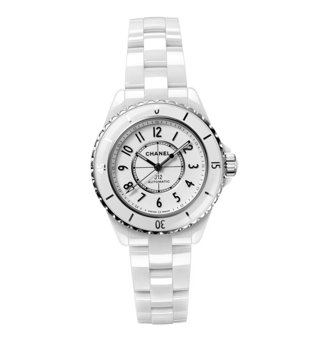 The dial continues the J12 tradition of minimalist elegance. Ceramic is paired with either lacquered or opaline finishes, set with diamond hour markers in some configurations, providing a subtle touch of luxury without overwhelming the purity of the design.