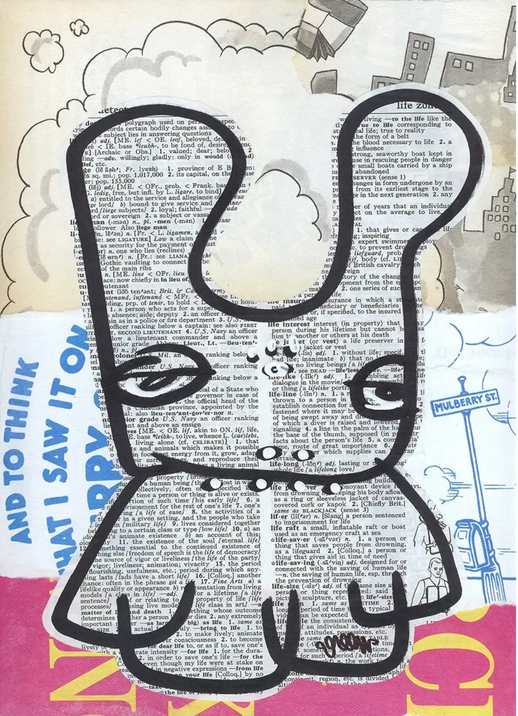 This instability is not a failure of representation; it is the point. By refusing to fully articulate the figure, Green disrupts the ease with which such imagery is typically consumed. The bunny cannot be immediately categorized or dismissed as familiar. It demands attention, not because it is complex in a traditional sense, but because it resists simplification.