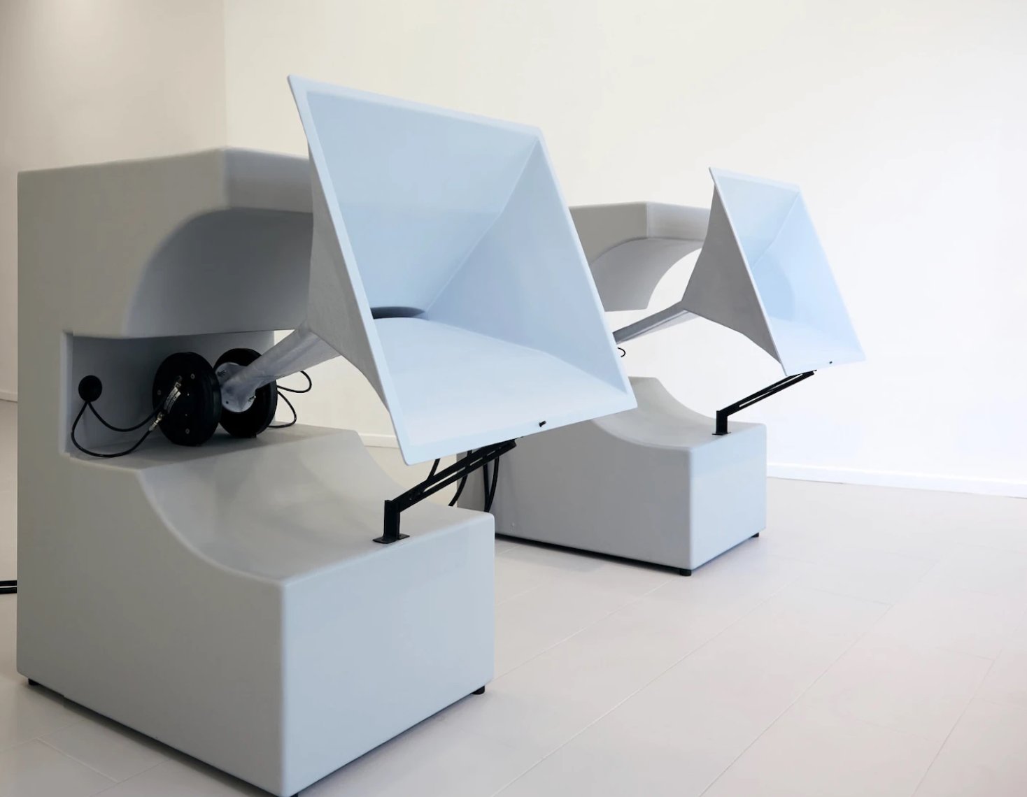 The sound installation—industrial, repetitive, ambient—doesn’t seek immersion but interruption. It scores the space like a warning tone, like the low-frequency hum of a facility long since evacuated.