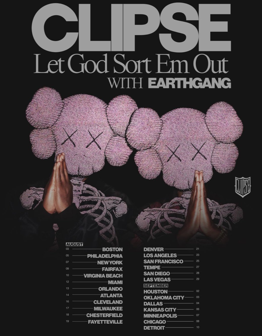 Joining them on the road is EARTHGANG—a choice that speaks volumes. The Atlanta duo is known for bending genre lines and infusing Southern funk with spiritual reckoning, making them the ideal spiritual opening act for Clipse’s apocalypse gospel.