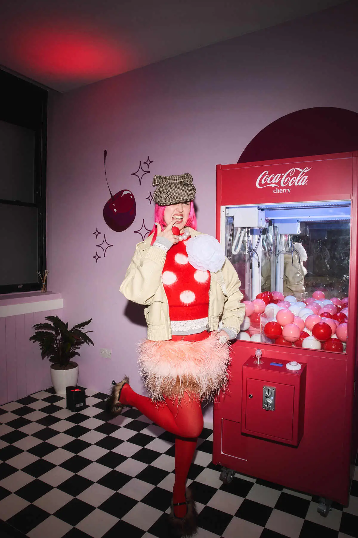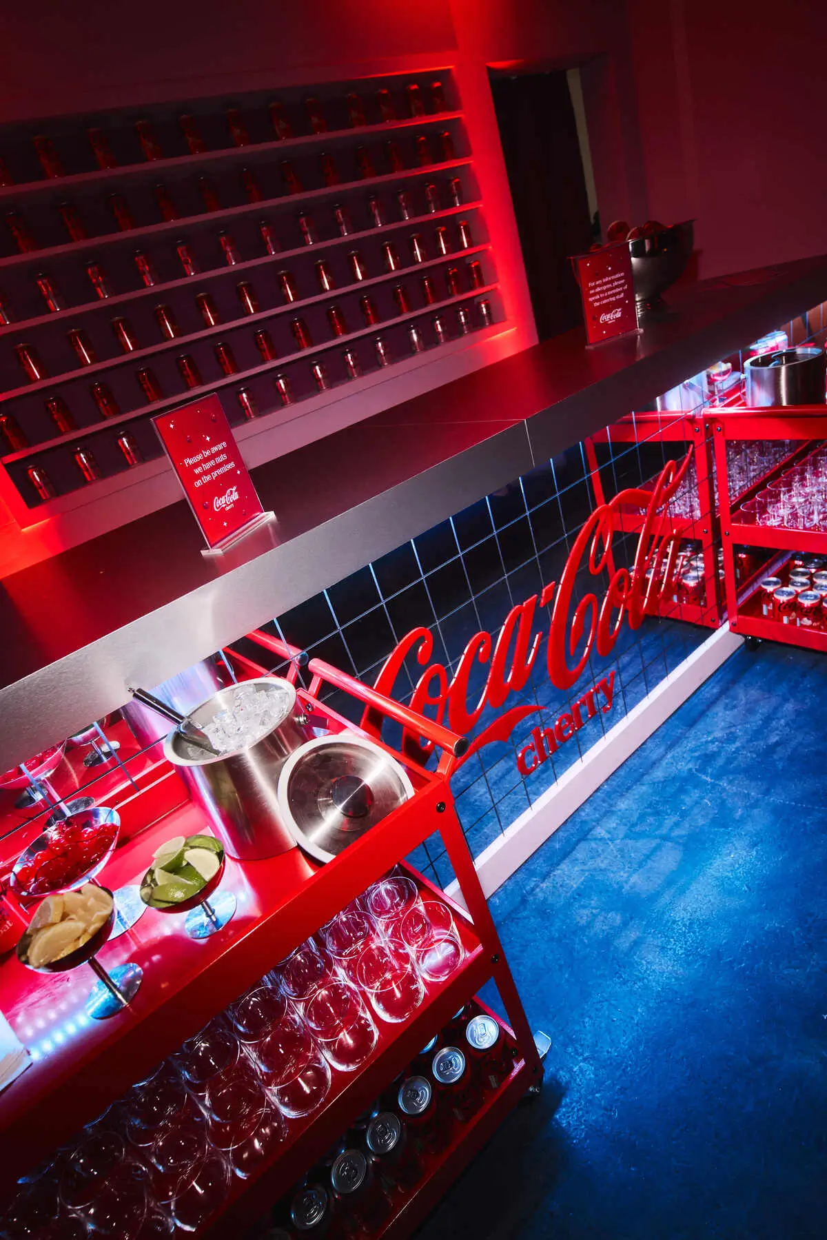 With built-in photo booths, branded backdrops, and playful props, the space encourages self-expression and user-generated content. Friends pose with oversized Coke bottles, snap selfies in cherry-themed frames, and dance to curated playlists that blend retro hits with modern pop.