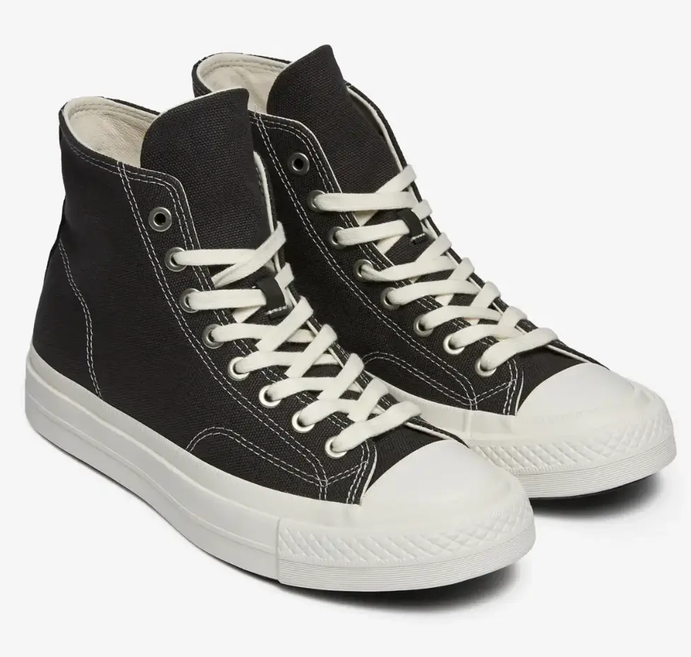 The “Beluga / Black” First String Chuck Taylor All Star Hi arrives without spectacle, and that restraint is precisely its point. Within Converse’s internal hierarchy, First String releases function as controlled recalibrations—iterations that refine rather than reinvent. The Beluga edition embodies this philosophy with unusual clarity. It is not designed to interrupt the Chuck Taylor lineage but to compress it, distill it, and re-present it through material sensitivity and tonal control.