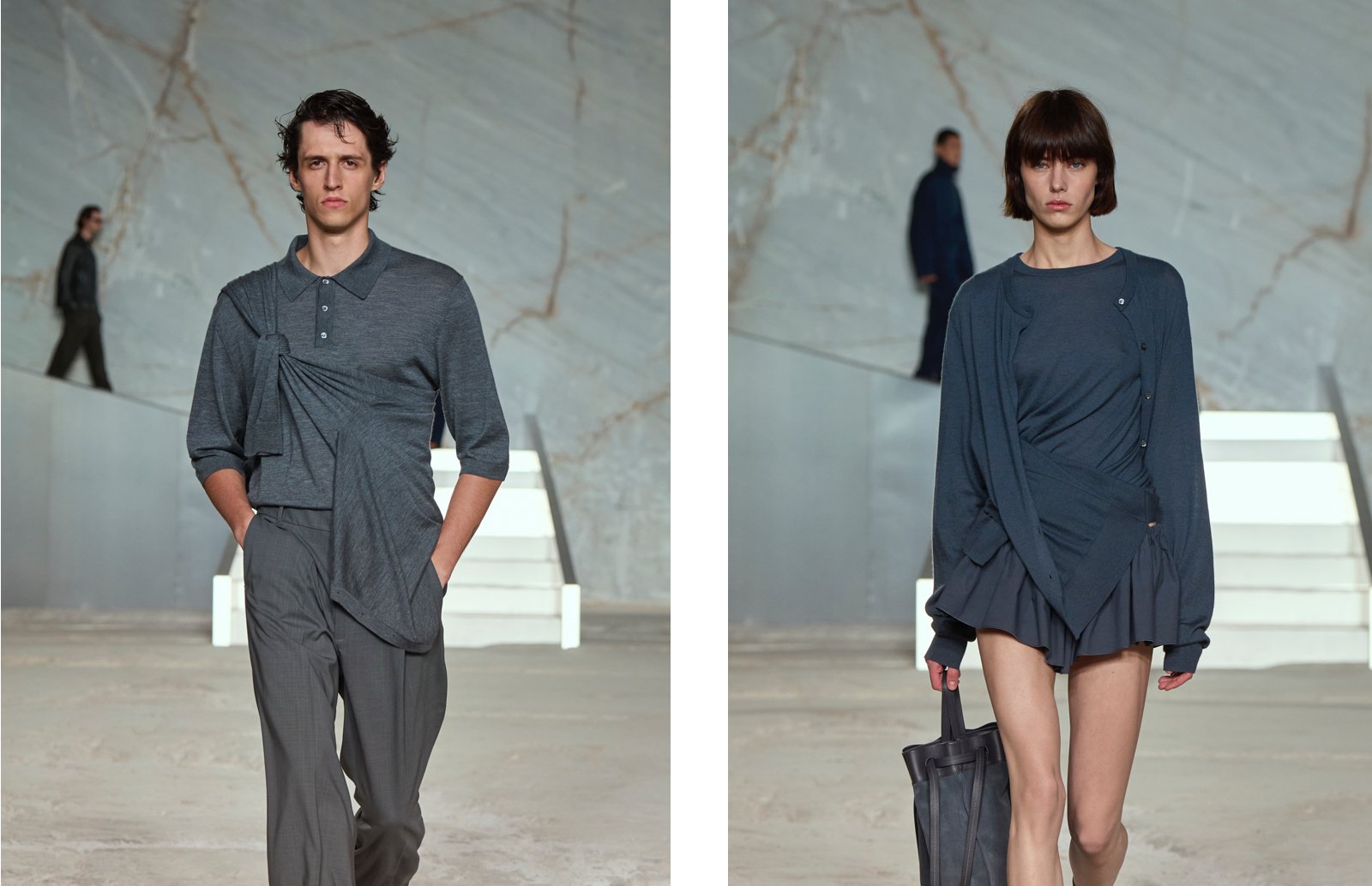 The juxtaposition of modern silhouettes against a background shaped by thousands of years of craftsmanship created an experience that was both timely and timeless. As the sun set across the marble terrain, COS unveiled a collection rooted in its core design language—clean lines, neutral tones, precise tailoring—but elevated by fresh energy, architectural volume, and subtle nods to Mediterranean culture.