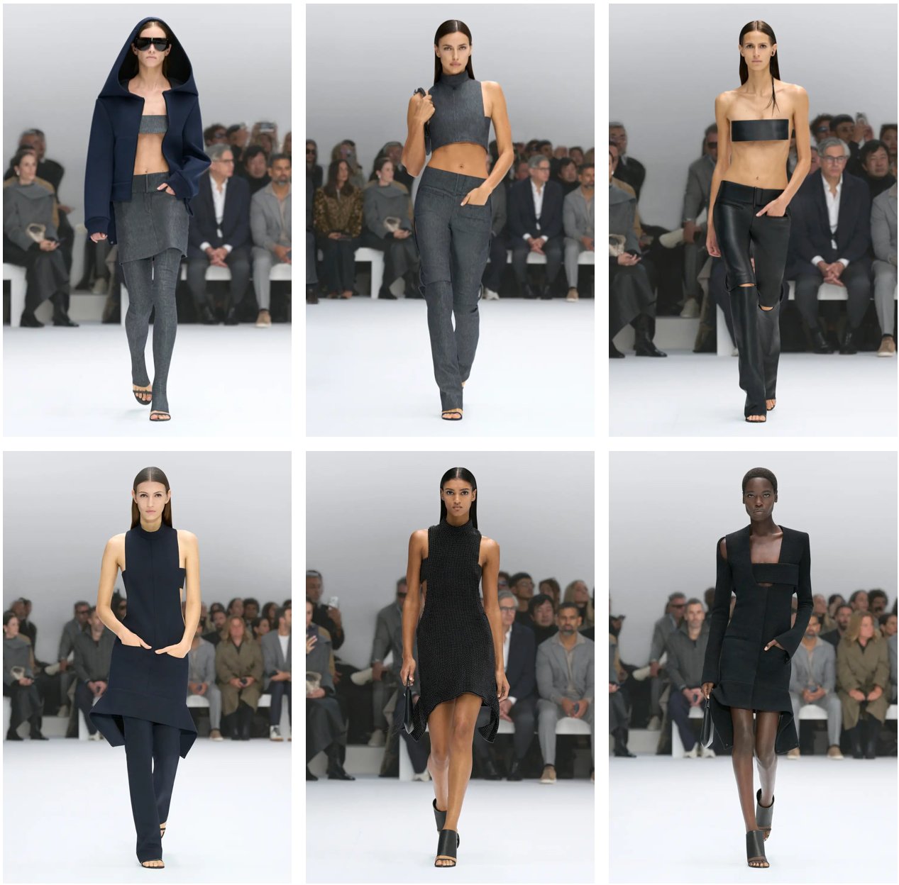 And yet, despite all the digital awareness and media-savvy formatting, what makes Courrèges work — and what makes this collection resonate — is its material discipline. Every piece is rooted in tangible considerations: cut, texture, utility, weight. There’s no gimmick in the garment itself. The tech fabrics, the leather, the architectural lines — they all serve the body. And while white is less dominant this time, the spirit of lightness persists. Even the darker looks feel reflective, as if borrowing brightness from within.