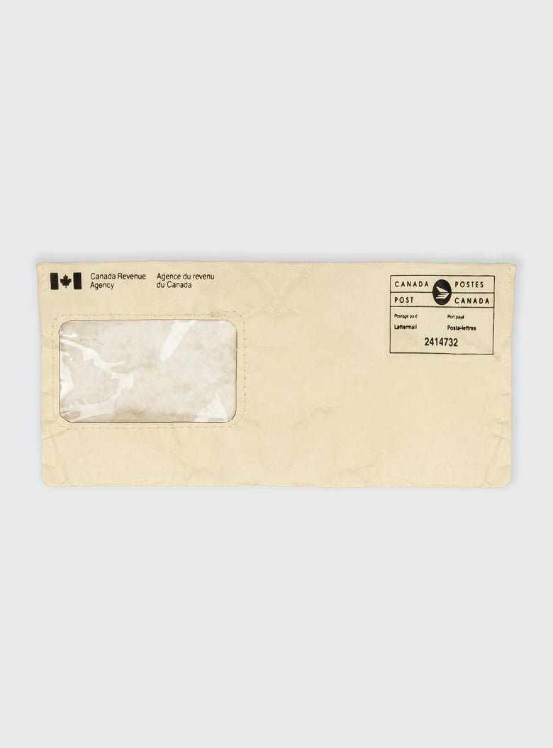 The CRA Envelope Bag M224080HYB, designed by Hybrid Clothing Canada, is a sleek and practical accessory that perfectly balances form and function. Constructed from durable Tyvek fabric, this letter-sized envelope bag is an ideal solution for carrying documents, essentials, or even serving as a stylish statement piece. With its innovative design elements, such as a transparent vinyl window pane, a detachable strap, and screenprinted graphics, this bag offers a unique blend of practicality and modern streetwear aesthetics.