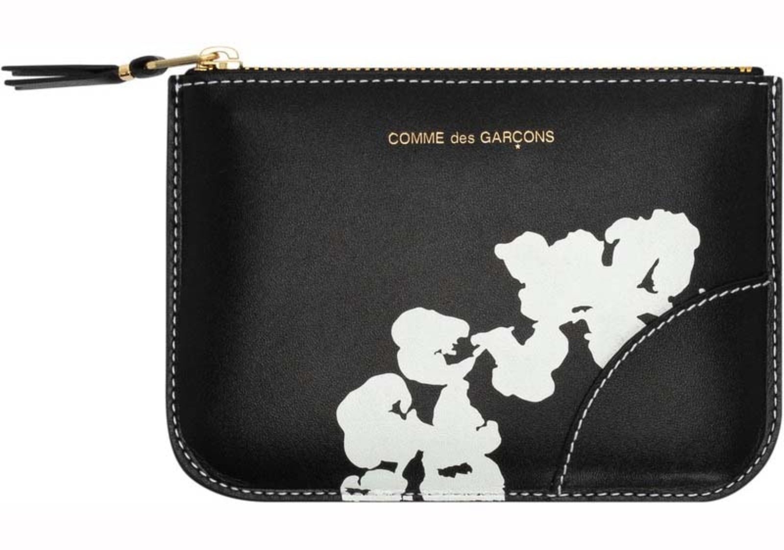 In the symphony of contemporary fashion where meaning is often lost in the echo of aesthetics, the Denim Tears x Comme des Garçons cloth fabric Wreath Zip Pouch emerges not as an accessory, but a text — black leather as parchment, stitched with coded memories. It is a statement piece in every sense of the phrase: compact yet confrontational, restrained yet radical. What may initially appear as an elegant monochrome pouch reveals itself, under closer inspection, to be part of a broader conversation — one stitched between heritage, protest, and poetic resilience.