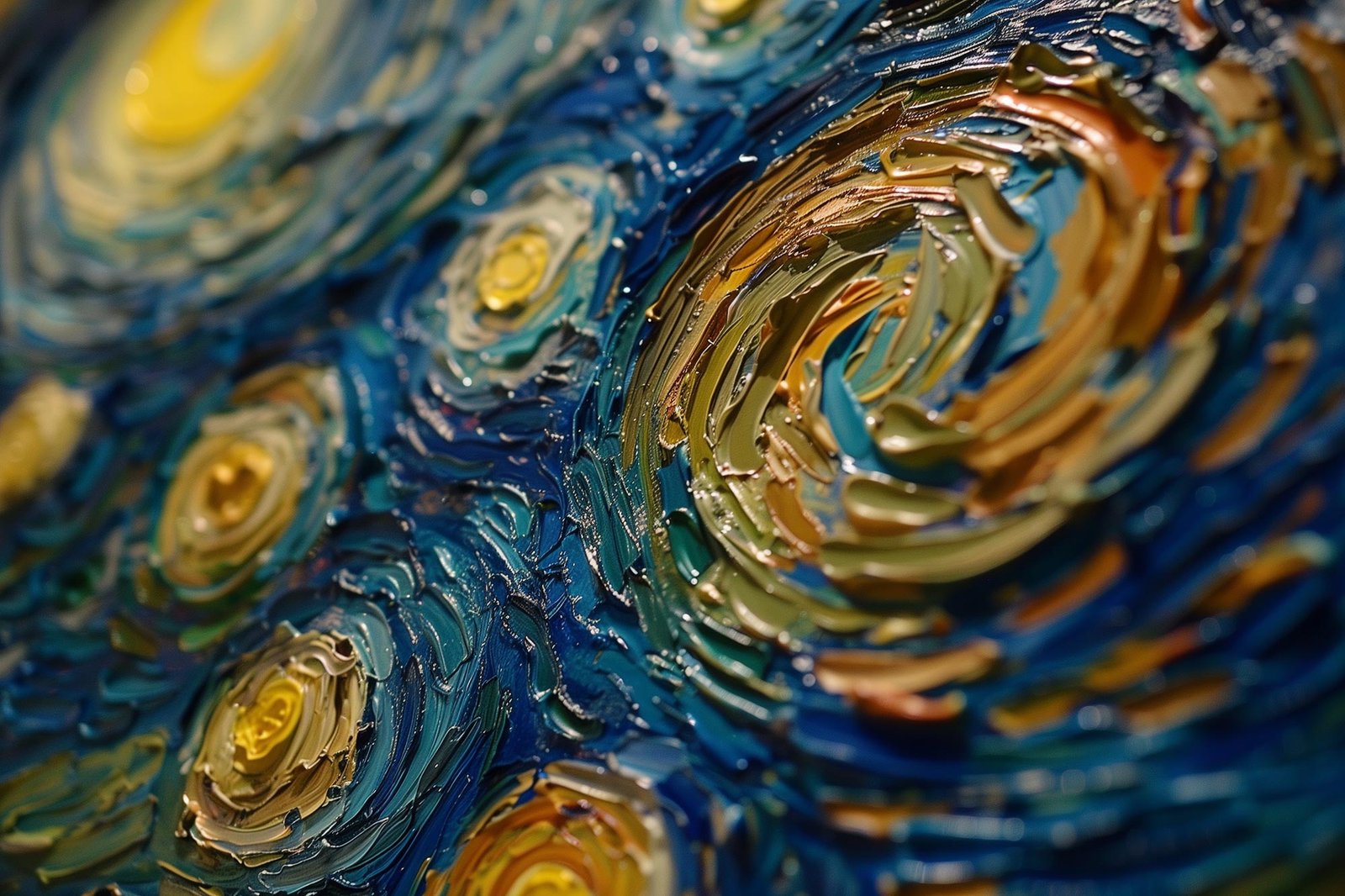 The impasto technique not only gives “The Starry Night” its signature tactile quality but also plays a crucial role in how viewers perceive the painting. The way van Gogh applied his brushstrokes—particularly in the sky—creates an optical illusion of motion, further emphasizing the swirling, turbulent nature of the scene. The texture and pattern of the brushstrokes trick the eye into seeing movement, drawing viewers into the rhythmic flow of the painting.