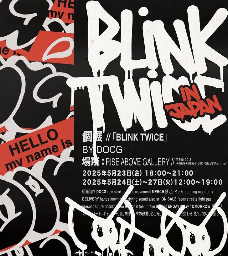 Melbourne-based artist DOCG returns to Japan, this time bringing with him an exhibition that challenges the act of seeing itself. Opening on May 24 at RISE ABOVE GALLERY in Osaka, BLINK TWICE is more than just a display of works—it’s a confrontation with perception. DOCG is not an artist bound by medium or tradition. Rooted in street culture but not confined to it, his practice spans across disciplines, incorporating sculpture, digital media, painting, and environmental installations. Each iteration of his work reinvents itself through context, echoing his deep, lived engagement with Japanese culture—a culture he has visited annually to absorb, remix, and re-present from a distinctly personal lens.